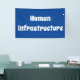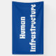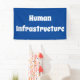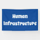 Un simple mensaje de apoyo de blanco sobre azul para infraestructura humana y mecánica. La infraestructura humana incluye la expansión de los beneficios médicos, el cuidado de los niños, la vivienda asequible, la reforma de la inmigración, el preescolar gratuito y dos años de universidad comunitaria, licencia familiar y de enfermedad pagada, un nuevo acuerdo verde, medidas contra el cambio climático para contrarrestar el calentamiento global con energía limpia.