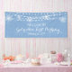 Añada este toque personal a la fiesta de cumpleaños inicial de su hijo. Reciba a sus huéspedes con una pancarta interior personalizada. Tiene un fondo de textura azul con una escena de ensueño con luces de cuerda y copos de nieve, Personalice añadiendo un nombre y una fecha. Consulte nuestros muchos otros productos de esta colección para que su celebración sea completa y personalizable.