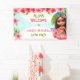 Banner de cumpleaños hawaiano para un chica con el pequeño chica tiki más lindo con ramo de flores de hibisco en maravillosos colores brillantes de verano para el verano. Personalice el texto fácilmente y no olvide visitar la tienda para ver los elementos que coincidan. :: Kate Eden Art