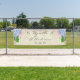 Versión de 8 pies de ancho (el arte no puede ser más grande) Lovely hortensias pintadas a mano en acuarela en azul y rosa se combinan con un par de libélulas sobre un diseño de patrón de hoja de acanto "tallado" de estilo vintage. Personalice el texto para su boda, baby shower u otra ocasión especial. Derechos de autor, Audrey Jeanne Roberts.