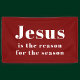 Jesus is the reason for the season. Share the reason for the season with this festive red sign. This Christian faith holiday banner is beautiful. "Jesus" is written in modern script with "the reason for the season" in simple typography. The text color is white on a dark red background. This religious Christmas sign would be great for sharing the meaning of Christmas at nativity scenes, at church, at a Christian Christmas display or for the faith filled family. Jesus. God's gift. Came down to earth on Christmas. It would suit well to church groups and Bible Study groups and a faith filled family. The fun script is editable.