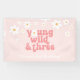¡Jóvenes Salvajes y Tres! Banner de cumpleaños estilo margarita de inspiración retro con margaritas estilo años 70 y fuentes y colores boho.