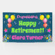 Globos brillantes, estrellas de confetti y cuernos llamativos anuncian el retiro de tu compañero de trabajo. Sólo cambia el nombre. Si necesitas ayuda, ¡sólo contacta conmigo!