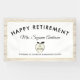 Este cartel de fiesta de jubilaciones está diseñado para un profesor. El borde es un gráfico rústico de madera y el diseño se acentúa con el dibujo de una manzana.