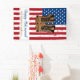 Añada el toque final a su fiesta militar de retiro con estos carteles militares de diseño de la bandera estadounidense y suministros de fiesta. Bandera estadounidense en blanco y azul rojo moderno, estrellas y rayas, con diseño de botas de combate doradas. Este cartel de fiesta de la bandera estadounidense es perfecto para un fiesta militar de retiro, despliegues militares, celebración de la casa de bienvenida militar, graduación militar y soldados que se van fiesta. Perfecto para todo el ejército, ejército, protección de fronteras, patrulla fronteriza, oficial de conservación, guardabosques, guardián de juegos, aplicación federal de la ley. Personaliza este cartel patriótico de la bandera estadounidense con tu nombre de soldados y felicitaciones, bienvenido a casa, buena suerte o feliz retiro. Consulte nuestra colección para ver las invitaciones militares a la jubilación, regalos de graduación militar, favores partidarios y suministros. DERECHOS RESERVADOS © 2021 Judy Burrows, Black Dog Art - Todos los derechos reservados. Bandera estadounidense Patriótica Bandera estadounidense Cartel de Jubilación Militar