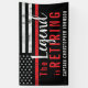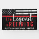 Este diseño presenta una bandera de bomberos con franjas negras y blancas, y también una franja de línea roja fina. El texto "La Leyenda se Jubila" está encima del nombre del bombero, teniente o jefe que se jubila. ¡Celebre con estilo!