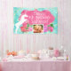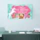 ¡Añade una foto del chica de cumpleaños! Crea una mágica fiesta de cumpleaños de cuento de hadas de unicornio para tu niñita con esta hermosa decoración de unicornio. Banner de personalizable con unicornio blanco, flores color agua rosa bonito, remolinos azul turquesa y dorado.
