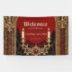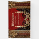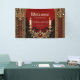 La elegancia oscura del estilo gótico. El fondo es un rojo profundo y rico que ofrece un contraste dramático con los acentos dorados brillantes. El diseño de estilo gótico combina elegancia y misticismo.