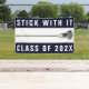 Banner del equipo de Lacrosse con cita motivacional y vara lax sobre fondo azul marino. Editar texto para añadir año y otro personalizar para el jugador o entrenador de lacrosse.