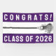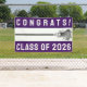 Creative lacrosse banner featuring lax stick and congrats on a purple background for lacrosse team party, senior night, graduation celebration or game day event. Edit text to customize year or otherwise personalize.