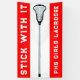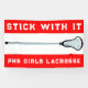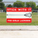Banner de lacrosse de chicas creativos con citas motivacionales y diseño de palos laxos en un fondo rojo. Edite texto a personalizar para su fiesta de lacrosse, evento de equipo, día de juego, noche de escuela o pruebas de equipo.