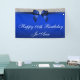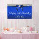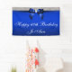 El azul real bonito y platea cualquier bandera personalizada edad del cumpleaños con una imagen gráfica plana de las lentejuelas de plata y el arco del azul real con el texto blanco.
