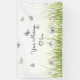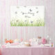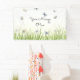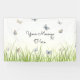 Escribe tu saludo, invitación o mensaje en un fondo de bonito de mariposas azules y crema volando sobre hierba iluminada por el sol. La pancarta de ensueño es apropiada para todas las ocasiones, incluyendo cumpleaños, aniversarios, día de la madre, fiestas del jardín y más.
