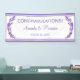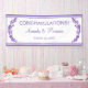 Añada este cartel de colgante de la recepción de bodas con la brisa de lavanda a sus accesorios Bodas. Diseñado con el texto: FELICITACIONES, los primeros nombres y fecha de Boda de The Bride & Groom, junto con un guarnecido floral de Lavender, este banner se puede personalizar, usando nuestra plantilla sencilla. No deje de ver todas las piezas de esta colección de Stationery Boda Floral de Lavender Breeze. ¡Disfrútalo!