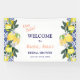 Eleva tu despedida de soltera con nuestro banner de bienvenida de baldosas azules y limón cítrico italiano mediterráneo. Este diseño encantador presenta limones y rosas rosadas en acuarela vibrantes, complementados con un patrón intrincado de baldosas azules italianas mediterráneas con la inscripción "Ciao Bella" en caligrafía de letras rosadas sobre blanco. Este banner promete traer el encanto del Mediterráneo a tu fiesta de verano de despedida de soltera. Puedes cambiar fácilmente el texto, las fuentes y los colores haciendo clic en las herramientas de personalización. Puedes transferir este diseño a una variedad de productos sin esfuerzo.