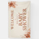 Un elegante cartel de bienvenida con una ducha de bebé de otoño con letras florales rústicas de terracota de bonito. Diseñado por Thisisnotme©