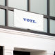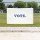 "Vota" letras azules, fondo blanco Banner Vote Blue, Biden Harris 2020 Demócrata
