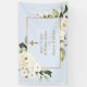 Diseño único y elegante con magníficas acuarelas de marfil blanco, hojas verdes, marcos falsos de oro, sobre un fondo azul claro. Utilice la herramienta Personalize para agregar su información. Para ver los artículos que coincidan, por favor, visite mi Colección de Baptismo y Fiestas de primer cumpleaños.
