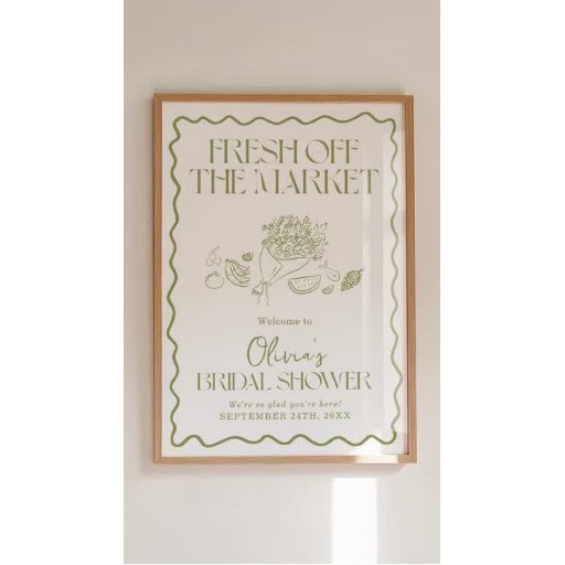 Saluda a tus invitados con estilo con este letrero de bienvenida dibujado a mano de la colección de Fiesta de Despedida de Soltera Fresh Off the Market. Con fuentes divertidas, gráficos verdes juguetones y un diseño caprichoso, establece el tono para una celebración divertida y memorable. Este letrero crea un punto focal llamativo y una atmósfera cálida y acogedora. Añádelo a la decoración de tu fiesta para un toque personalizado y elegante que tus invitados adorarán.