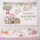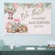 Celebra la llegada de tu bebé con este encantador banner de baby shower con temática de safari en la jungla de color rosa! Con la frase "Oh Girl!" en elegante letra cursiva, este diseño destaca a una dulce elefanta que lleva un lazo rosa como la estrella del espectáculo. Está rodeada de adorables animales de acuarela, incluyendo una jirafa, un mono, una cebra y un león. El follaje tropical y las flores rosadas completan el diseño, agregando un toque caprichoso y elegante a la decoración de tu fiesta.