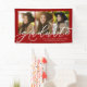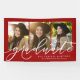 Celebra tu cartel de invitación de graduación de tres fotos que incluye un moderno y moderno guión de caligrafía "graduado" en blanco contra un fondo rojo escarlata. Perfecto para fiestas de graduación o simplemente para ver a vecinos y amigos, este banner es elegante, moderno y destaca.