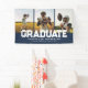 Celebra tu graduación con este cartel de invitación de tres fotos que muestra a un audaz "graduado" deportivo en blanco contra un fondo azul marino. Perfecto para fiestas de graduación o simplemente para ver a vecinos y amigos, este banner es elegante, moderno y destaca. El tipo de letra del estilo atlético funciona muy bien para los atletas de secundaria y universitarios - para hombres y chicas.
