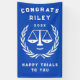 Cartel del fiesta de felicitaciones a los estudiantes de Derecho. Para personalizar, edita texto para añadir el nombre del graduado y el año de graduación.