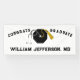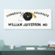 Pancarta de felicitaciones a los graduados de una escuela de medicina creativa que incluye tapón de grado doctoral, tassel de oro y estetoscopio. Para personalizar, edite el texto para agregar el nombre.