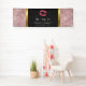 Banner de bienvenida de la fiesta de la Bachelorette diseñado con un fondo compuesto por un moderno patrón de hojas tropicales de oro rosa de moda. En la parte superior hay un marco negro con un borde de gradiente dorado, en el interior están los labios purpurinoso rosados.