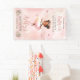 "¡Una dulce bailarina está en camino y estamos emocionados!" adorable bailarina y mariposas chica Baby Shower o diseño de Sprinkle con alcohol rosa y fondo rosado estilo rosado.