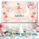 Banner de cumpleaños con temática de ballet con la más fina bailarina rubia, globos y flores en suaves tonos rosa, verde azulado y beige dorado. Genial para el cumpleaños de cualquier niña. Personalice fácilmente todo el texto, incluido el número de cumpleaños. - Kate Eden Art