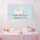 Una adorable llama de bebé blanca con flores en esta pancarta de bebé. Vea nuestra colección de productos fiestas y productos para bebés.