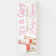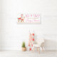 Banner de baby shower de llama con una linda mamá llama y una niña en un bonito fondo de puntos rosados y dorados. Este banner de baby shower de llama se personaliza fácilmente para su evento simplemente agregando el texto que desee.
