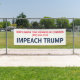 Descripción de la imagen: Rojo todos los gorros sans serif el texto dice en dos líneas, "Sigue llamando a tus miembros del Congreso (202) 224-3121". En tercera línea, en azul más grande, todos los gorros son sans serif texto, que dice: "Impeach a Trump".