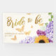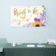 Un banner de despedida de soltera boho chic, floral, simple, moderno, elegante y clásico con un título "Novia a Punto de Casarse", con un ramo rústico de girasoles, hortensias y hiedra, con mariposas doradas (este es un efecto digital, no de lámina de oro real), tipografía de caligrafía moderna y tipografía en púrpura pálido. Un diseño chic y atemporal que combina el diseño de boda tradicional y formal con caligrafía moderna y una maquetación trendy.