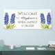 Moderno, elegante, azulbonetes, flores azules acuarela primavera, verano pancarta de bienvenida para Bridal shower. Pancarta rústica de flores silvestres del estado de Texas. Perfecto para Bridal shower. Puedes personalizarlo con el nombre de la novia y la fecha.