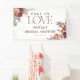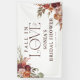 Sumérgete en la cálida y rica paleta del otoño en tu lluvia de boda con nuestro elegante banner. El hermoso texto 'Fall in Love', artísticamente rodeado de flores de acuarela en tonos de burgundy, naranja quemada, rosa sonrosado y marfil entre el follaje de temporada, crea una atmósfera de encantamiento. Diseñado perfectamente para tus celebraciones con tema otoñal, nuestro banner captura verdaderamente la esencia del romance otoñal.