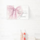 La pancarta de bienvenida para despedida de soltera con lazo de acuarela rosa simboliza hermosamente la alegría de atar el nudo. La delicada textura similar al tul del lazo capta la atención y proporciona una apariencia moderna y clásica que seguramente deleitará a sus invitados. El formato grande y la impresión de alta calidad aseguran que su texto personalizado se muestre hermosamente, lo que hace que esta pancarta sea un telón de fondo funcional y elegante para mesas de regalos o cabinas de fotos. Perfecta para un refinado desayuno de novia o un té de la tarde, esta pancarta ofrece una solución de alta calidad para anfitriones que valoran la decoración de fiesta elegante y cohesionada.