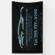 Serie metálica: Un gran banner de vinilo de negocios para lujosas tiendas de venta de autos deportivos eléctricos e híbridos, y concesionarios. El logotipo estilizado desliza la clase con su dibujo de línea parcial y efecto de brillo de neón azul hielo. Todo lujo. Personalizar con tus detalles y da una correa, cita o mensaje personal para ese ambiente realmente profesional.