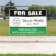 Banner al aire libre simple y profesional es una gran estrategia de marketing para cualquier agencia inmobiliaria. Los reparadores y agentes inmobiliarios pueden usar este signo promocional para la venta de personalizado para promocionar su negocio inmobiliario y las propiedades y casas que están a la venta / en el mercado. No importa si la propiedad en venta es residencial o comercial, esta es una gran herramienta promocional. Puede añadir el logotipo de su empresa y los detalles de su negocio, como su sitio web o número de teléfono, de forma que los clientes potenciales puedan llegar fácilmente a usted.