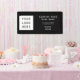 Colgar este pequeño banner horizontal de tamaño conveniente dentro o fuera del sitio, en la oficina, o en una cabina de exhibición, que incluye tu logo, nombre de la empresa, lema o línea de etiquetas, y cualquier información adicional (por ejemplo, sitio web, medios sociales, etc) en texto blanco sobre fondo negro. Plantilla limpia y sencilla, adecuada para empresas, empresas u organizaciones grandes o pequeñas.