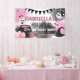 Banner de la fiesta de cumpleaños de Halloween, super adorable chica rosada y negra. Con fantasmas espeluznantes, murciélagos, arañas, brujas, calabazas, humo acuarela, afilado afilado negro y estrellas. Personalice agregando nombre y edad.