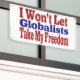 Cartel que promueve a aquellos que no quieren renunciar a su libertad al globalismo. Disponible en diseño interior y exterior.