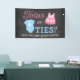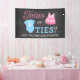 Los tutúes lindos o el género de los lazos revelan la bandera del fiesta. Un género popular revela el tema que ofrece un equipo rosado femenino del tutú y un mameluco azul del niño pequeño con el lazo en un fondo de la pizarra.