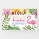 Digan "¡Aloha!" con estilo con esta pancarta tropical floral de 1° cumpleaños con un flamígero rosa juguetón, flores de hibisco coloridas y hojas verdes. Perfecto para los cumpleaños de estilo hawaiano, fiestas de luau de verano o celebraciones en el patio trasero, este cartel de bienvenida personalizado le da un toque luminoso y divertido a su decoración fiesta. Personalizar con el nombre de su hijo y utilícelo como fondo fotográfico, signo de entrada o detrás de la mesa de postres. ¡Una manera alegre y tropical de celebrar el gran hito de tu pequeño!