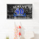 Este elegante diseño presenta un gigantesco purpurina azul "40", el texto del guión "Sassy" y el cartel de la cinta encima de una fotografía en blanco y negro de un brillante paisaje urbano reflejado en el agua. Añade el nombre de tu celebración de cumpleaños para personalizarlo usando la plantilla fácil que se proporciona. Busque ID191 para ver otras edades y más productos con este diseño.