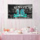 Este elegante diseño cuenta con un gigantesco y verde azulado falso purpurina '16' y cinta sobre una fotografía en blanco y negro de un brillante paisaje urbano reflejado en el agua. Añade el nombre de tu celebración de cumpleaños para personalizarlo usando la plantilla fácil que se proporciona. Busque ID120 para ver otros productos con este diseño.