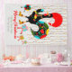 El ilustracion "Navidades Luces y Baudibles" capta el espíritu festivo con un bonito gallo portugués en su corazón. Las plumas negras de la cola del gallo están decoradas con puntos blancos, flores folclóricas y hojas, y un corazón rojo. El gallo atrapa a los Navidades en sus plumas de mano mientras camina hacia casa. Además, regalos navideños animados y desfile de baubles juguetón, todos marchando hacia casa para decorar el árbol de Navidad. ¡Supongo que podemos decir que se parece mucho a Navidades! Una cortina luminosa de luces parpadeantes se esconde detrás, proyectando un aura mágico. Esta escena encantadora combina tradición y capricho en perfecta armonía. Este producto es ideal para la temporada navideña. Además, hace una buena oferta a una familia o amigo portugués, tanto niños como adultos, un pariente, alguien de ascendencia portuguesa, o alguien que aprecia las tradiciones portuguesas. Eliminar, agregar o cambiar las palabras, su tipo de letra y color con la Herramienta de diseño de Zazzle.