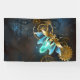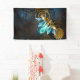 luciérnagas de vapor con alas transparentes azules y bombilla verde sobre fondo gastado, marrón y texturado. Estilo Steampunk.