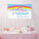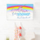 Pancarta de la ducha de bebé arcoiris, con una pintada de una pintoresca y caprichosa pintura de color nórdico y un arcoíris gráfico en los tradicionales colores arcoiris con cielo azul. Personalice su nombre con su propia ducha de bebé. Hay otros elementos coincidentes disponibles. Arte y diseño de acuarelas únicas de Sarah Trett para www.mylittleeden.com